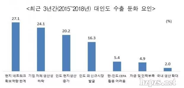 出口正在減少的企業(yè)中,27.1%的企業(yè)認(rèn)為最大的障礙是‘很難確保當(dāng)?shù)鼐W(wǎng)絡(luò)’,其次是‘企業(yè)生產(chǎn)性下降’(24.1%),‘印度當(dāng)?shù)厣a(chǎn)增加’(20.2%)。