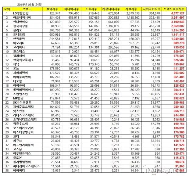 韓國化妝品上市企業(yè)品牌評價排行榜出爐,LG生活健康高居榜首2019-6-28 18:26:37 閱讀數(shù):