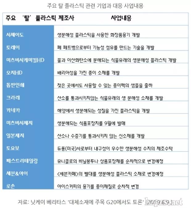 By beautynury 0 CommentKOTRA,克服價(jià)格、品質(zhì)問題,給韓國企業(yè)帶來機(jī)會(huì)  近日,有提議稱,隨著日本政府推動(dòng)減塑政策,韓國企業(yè)進(jìn)軍市場的機(jī)會(huì)可能會(huì)擴(kuò)大。 KOTRA東京貿(mào)易館最近發(fā)布的報(bào)告中預(yù)測,日本主要企業(yè)正在加速去塑料化,因此開發(fā)替代材料將成為商機(jī)。 據(jù)《日本經(jīng)濟(jì)新聞社》報(bào)道,資生堂、Kaneka、TORAY、Claret、日本制紙等企業(yè)正帶頭減塑。 化妝品企業(yè)資生堂與化學(xué)企業(yè)Kaneka攜手開發(fā)使用生物降解性塑料的化妝品容器,也有日本印刷企業(yè)開發(fā)出了替代洗發(fā)水等塑料容器的材料Q-Pack。 便利店排名第三的羅森(LAWSON)從今年5月開始在全國約1.4萬家店鋪,將冰咖啡的塑料杯換為紙杯。 日本政府對塑料袋收費(fèi)推行環(huán)保購物袋也受到關(guān)注。 shupatto是輕便、設(shè)計(jì)多樣,尺寸、顏色等適合各種情況的市場人氣商品。優(yōu)點(diǎn)是,向兩邊拉一下就可以完成折疊,而且不占用包內(nèi)空間。 報(bào)告關(guān)注了最近為減塑,在本公司技術(shù)基礎(chǔ)上推出Natube品牌,開始制造環(huán)保紙吸管的韓國企業(yè)。 該公司從10年前開始向日本供應(yīng)紙質(zhì)紙管,2018年全球環(huán)保產(chǎn)業(yè)開始成為趨勢,因此該公司生產(chǎn)與現(xiàn)有業(yè)務(wù)相似而且成發(fā)展迅速的一次性用品之一紙質(zhì)吸管。 紙質(zhì)吸管遇水后會(huì)粘在嘴上,讓用戶產(chǎn)生反感,因此從一開始使用不粘的頂級(jí)原料,從根本上解決問題。 也就是說,如果克服替代材料的價(jià)格和質(zhì)量問題,對韓國企業(yè)來說是很好的商機(jī)。 目前,美國、歐洲(2020~2021年)、中國臺(tái)灣(2019年)等多個(gè)國家和地區(qū)已經(jīng)禁止或計(jì)劃禁止一次性塑料吸管,因此預(yù)計(jì)日本今后如果出現(xiàn)法律限制,也將自然而然地被綠色材料產(chǎn)品所取代。 KOTRA相關(guān)人士表示,隨著日本掀起去塑料化趨勢,也將成為韓國企業(yè)的機(jī)會(huì),今后通過持續(xù)開發(fā)相關(guān)產(chǎn)品,企業(yè)應(yīng)提高海外市場的競爭力。 |