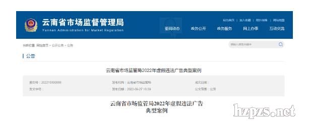 云南省市場監(jiān)管局公布2022年虛假違法廣告典型案例