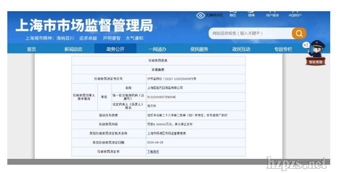 (截圖自上海市市場監(jiān)督管理局)