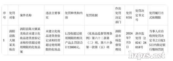 安徽渦陽(yáng)縣市場(chǎng)監(jiān)督管理局11日發(fā)布行政處罰信息。 內(nèi)容顯示,渦陽(yáng)縣陳大鎮(zhèn)某美妝店未建立化妝品進(jìn)貨查驗(yàn)記錄和經(jīng)營(yíng)超過(guò)使用期限的化妝品被罰款1.3萬(wàn)元。  瀟湘晨報(bào)綜合 |