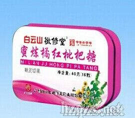 成份:白砂糖,葡萄糖漿,蜂蜜,薄荷腦,植物提取物(橘皮,枇杷,杏仁,桔梗),食用香精香料,焦糖色,食鹽。敬修堂蜜煉橘紅枇杷糖含片是以優(yōu)質(zhì)藥食同源中藥枇杷果、金銀花、桔梗、菊花、杏仁、等為原料,與蜂蜜、薄荷腦、白砂糖、葡萄等配伍,在GMP糖果生產(chǎn)線上澆注而成。