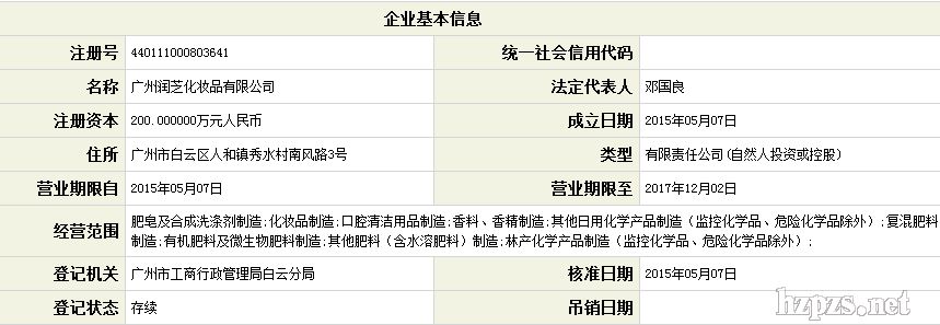 廣州潤芝化妝品有限公司