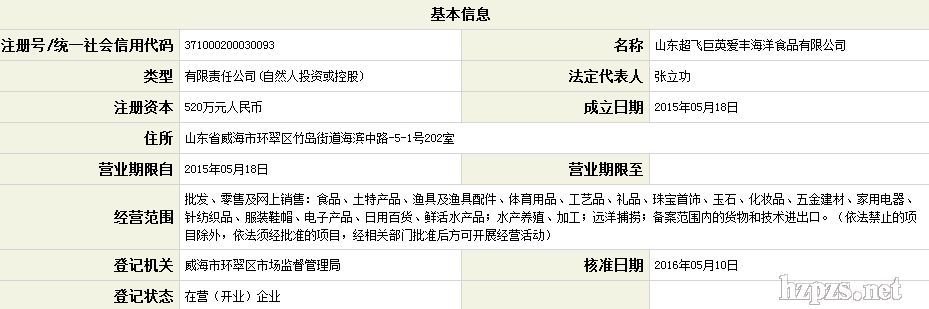 山東超飛巨英愛豐海洋食品有限公司 孫偉超 地 址: 山東威海名流花園A210