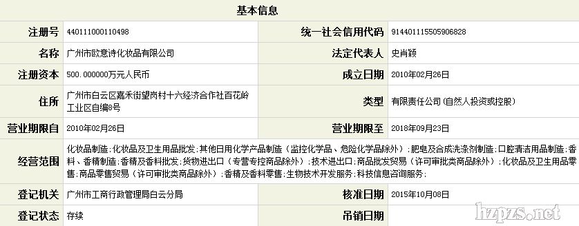 廣州市歐意詩化妝品有限公司