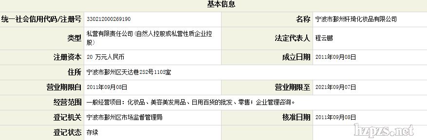 寧波市鄞州軒琦化妝品有限公司 軒琦 地 址: 寧波市天童南路580號(hào)廣博麗景中心1105室。