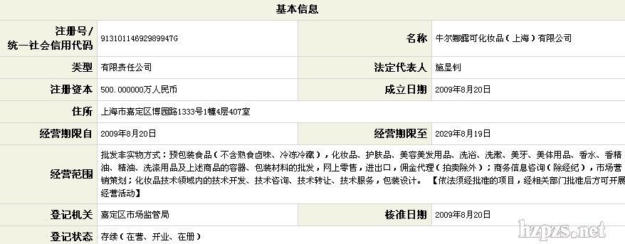 牛爾娜露可化妝品(上海)有限公司