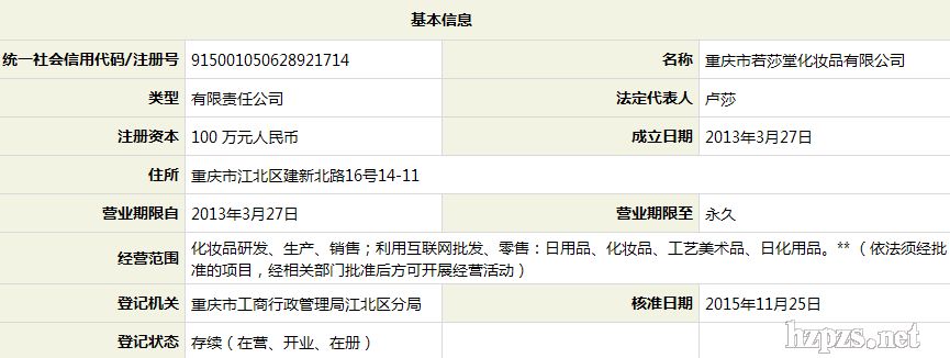 重慶市若莎堂化妝品有限公司