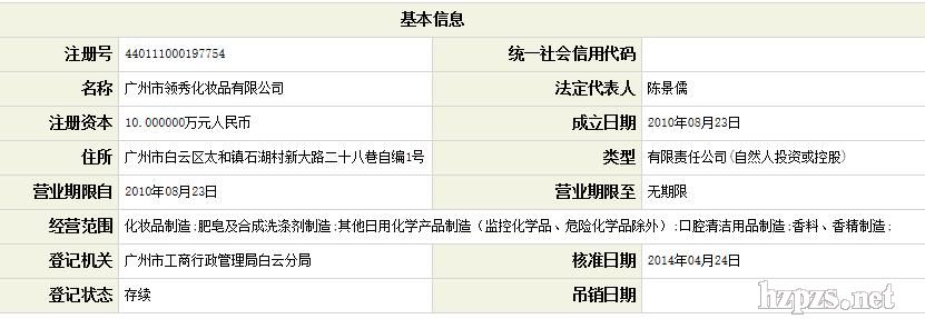 廣州市領秀化妝品有限公司