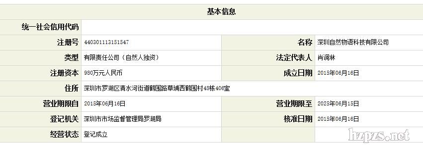 深圳自然物語科技有限公司 易芳 女士 地 址: 深圳市羅湖區(qū) 清水河街道鶴圍路草埔西鶴圍村48棟