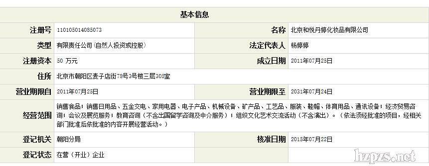 北京和悅丹婷化妝品有限公司 莎琳蒂蔓 地 址: 北京
