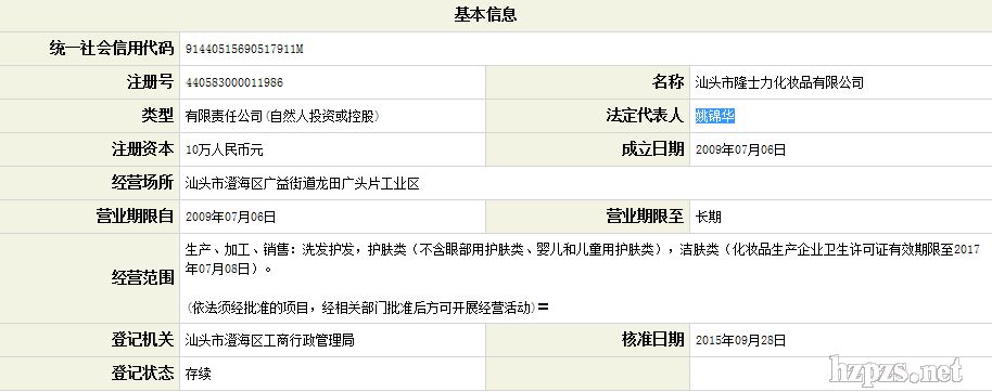 汕頭市隆士力化妝品有限公司