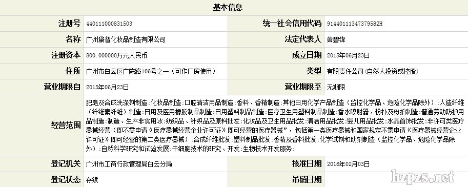 廣州黛普化妝品制造有限公司 黃超 先生 地 址: 廣陳路106號(hào)之一
