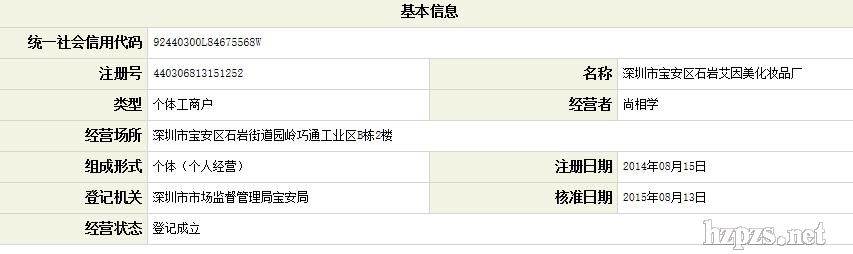 深圳市寶安區(qū)石巖艾因美化妝品廠