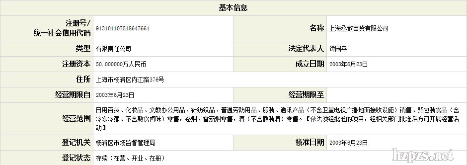 上海丞歆百貨有限公司 譚歆 先生 地 址: 楊浦區(qū) 內(nèi)江路472號