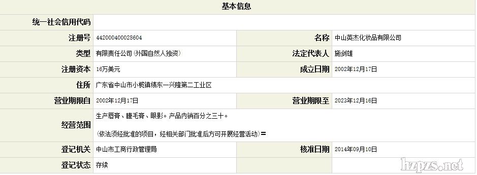 中山英杰化妝品有限公司