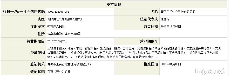 青島蘭蘭生物科技有限公司 康建茹 女士 地 址: 青島市李滄區(qū) 青島市龍水路318號(hào)