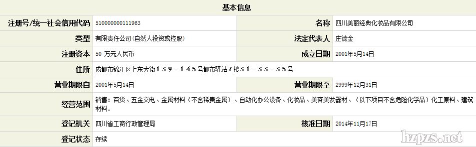 四川美麗經(jīng)典化妝品有限公司