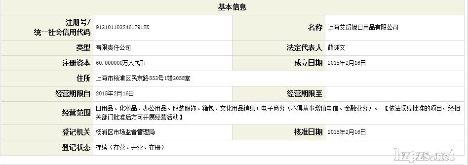 上海艾覓妮日用品有限公司