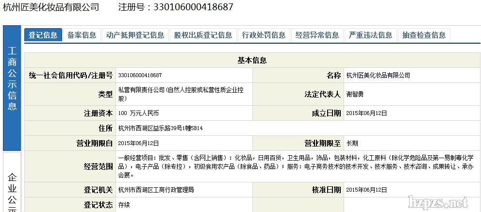 杭州匠美化妝品有限公司 李女士 地 址: 杭州市西湖區(qū)益樂路39號(hào)1幢5B14
