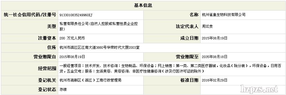杭州雀皇生物科技有限公司 -