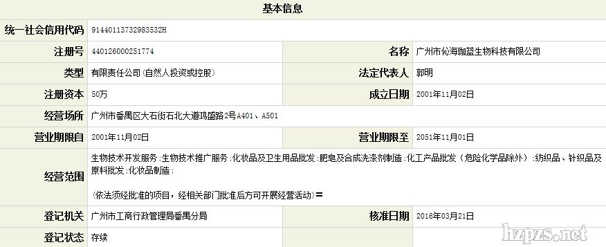 廣州市伈海珈藍(lán)生物科技有限公司 -