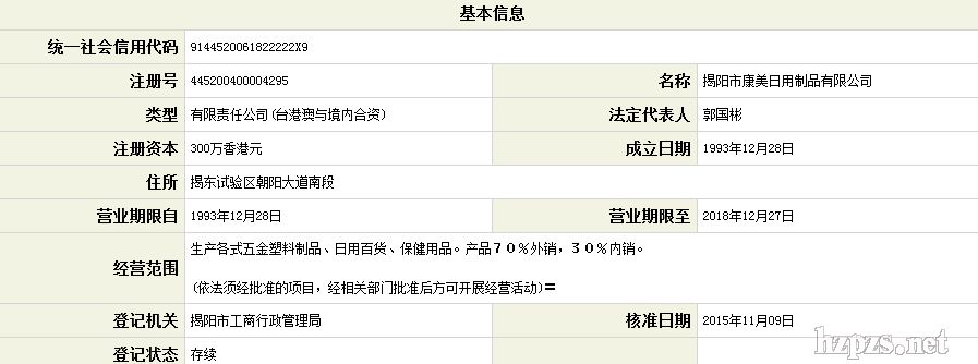 揭陽市康美日用制品有限公司
