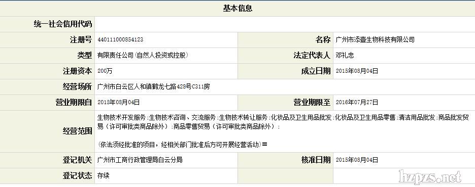 廣州市添壹生物科技有限公司 李小姐 地 址: 廣州市白云區(qū)人和鎮(zhèn)穗和名庭C棟705室