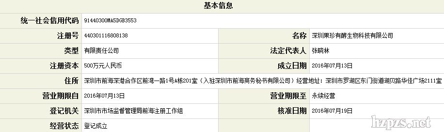 深圳果珍有酵生物科技有限公司