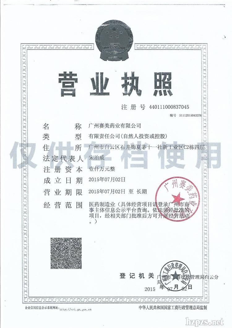 廣州賽美藥業(yè)有限公司 閆明菊 地 址: 廣州市越秀區(qū)廣園西路美博城c座1A7A