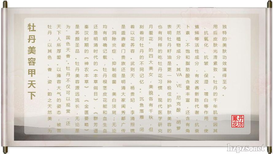 牡丹美容的歷史在中國源遠(yuǎn)流長,從秦漢時(shí)期的《神農(nóng)本草經(jīng)》、《金匱要略》到明代的《本草綱目》均有明確記載。無論是唐晉豪門貴族,還是明清大家閨秀,“以花養(yǎng)容”傳越千年。牡丹以其傲然于世的姿態(tài)、強(qiáng)大的養(yǎng)顏功效,成為她們美容的。武則天、楊貴妃、李清照……這些與牡丹結(jié)緣的面孔,鐫刻著牡丹的不同記憶。時(shí)光流轉(zhuǎn),牡丹的千年肌緣因其“國色天香”的美艷和獨(dú)特的美膚功效演繹至今。