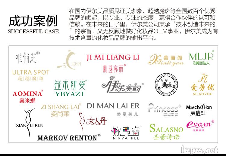 現(xiàn)公司擁有:伊爾娜美、伊爾美韻、美珈豪、超越魔斑、露梅、圣蕾詩諾、美麗佳人等多個知名自主品牌,均在業(yè)界諦造良好的口碑。公司秉承“品質(zhì)第一,服務(wù)第一,團隊第一”的企業(yè)宗旨,迅速成功的步入行業(yè)內(nèi)一流專業(yè)化妝品生產(chǎn)企業(yè)。