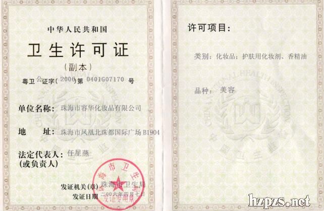 衛(wèi)生許可證