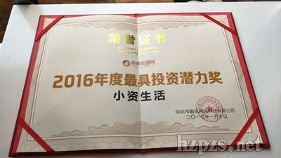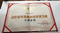 • 2016年小資生活獲評前景網(wǎng)年度最具投資潛力獎(jiǎng)