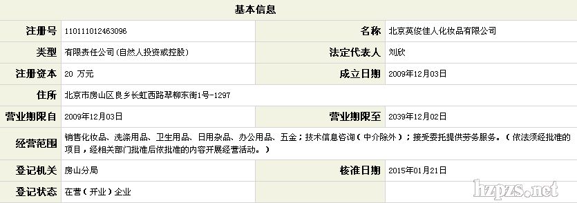 北京英俊佳人化妝品有限公司