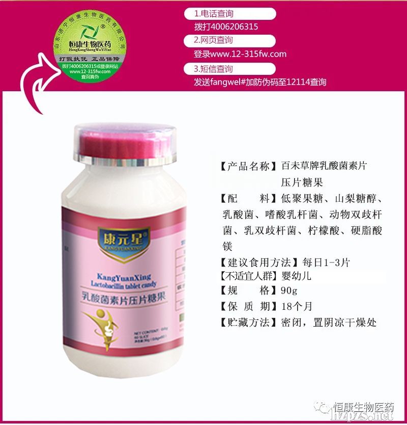 產(chǎn)品名稱 康元星牌乳酸菌素片壓片糖果 (瀏覽:908次,留言:0條)